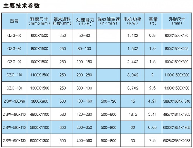 本公司生產(chǎn)的給料機(jī)系列分為激振式給料機(jī)與直線式給料機(jī)兩種。激振式給料機(jī)系列采用兩臺(tái)激振式電機(jī),用戶可自由調(diào)整給料機(jī)的振動(dòng)頻率,從而完全控制石料的給料速度,保證整條生產(chǎn)線的順暢運(yùn)行。直線振動(dòng)式給料機(jī),具有振動(dòng)平穩(wěn),工作穩(wěn)定,壽命長等特點(diǎn)。可為碎石機(jī)械連續(xù)、均勻給料,并對(duì)物料進(jìn)行粗篩分。廣泛應(yīng)用于選礦、建材、硅酸鹽和化學(xué)工作中的碎石、篩分聯(lián)合設(shè)備中。